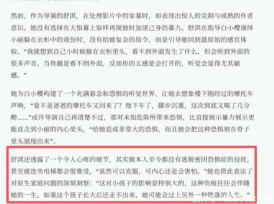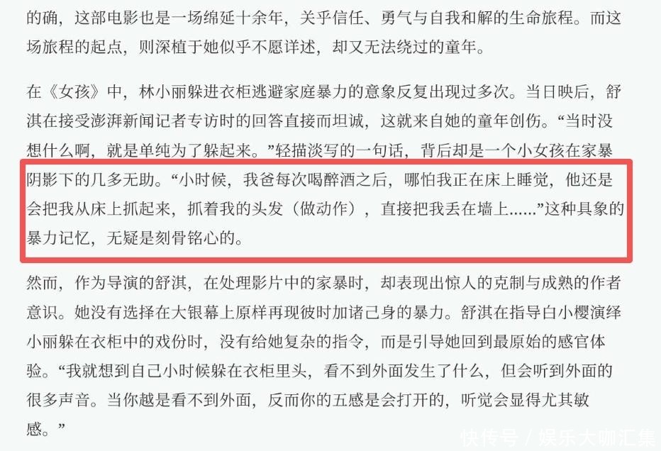 片中林小丽躲进衣柜逃避家暴的一幕,正是她童年的翻版再现。