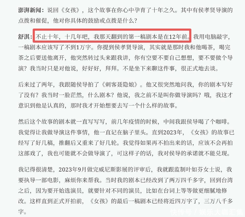 鲜为人知的是,《女孩》这部作品对舒淇而言承载着非同寻常的意义。